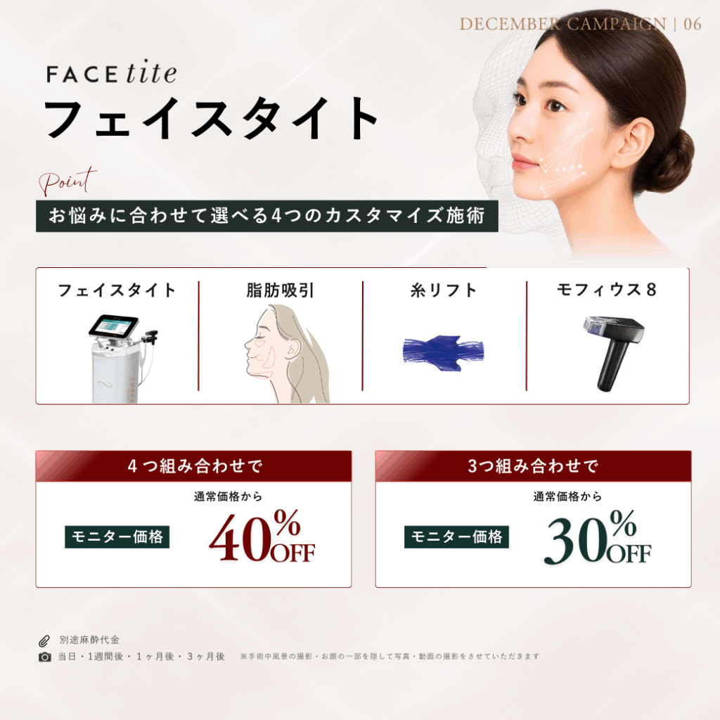 使用する医療機器・薬剤はすべて正規代理店からの購入品のみ。厳格な品質管理を徹底しています。さらに、麻酔科医常駐の体制で痛みを最小限に抑え、施術後の不安やトラブル時も医師が責任を持って対応する万全のアフターフォローをお約束します。