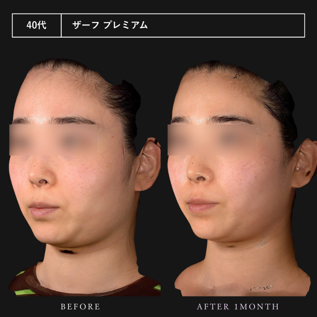 □施術の説明:高周波(RF)を使い真皮層〜脂肪上層にアプローチし肌を引き締めハリを出すたるみ治療