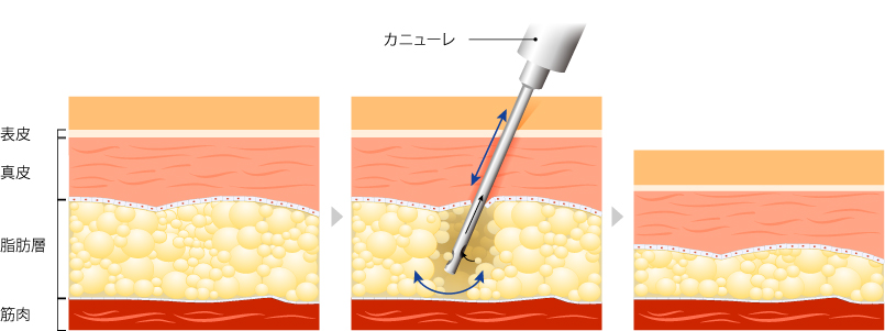 脂肪吸引は、カニューレという細い管を使って、物理的に脂肪細胞を吸い出す治療です。 その最大のメリットは、 「圧倒的なボリュームダウン」です。