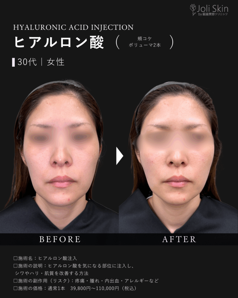 ・施術の説明:ヒアルロン酸を気になる部位に注入し、シワやハリ・肌質を改善