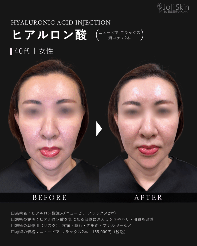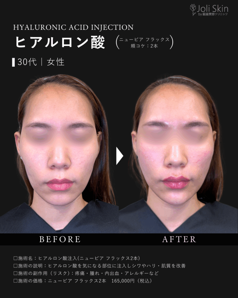 ・施術名:ヒアルロン酸注入(ニュービア フラックス2本)