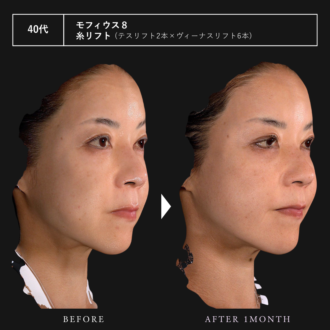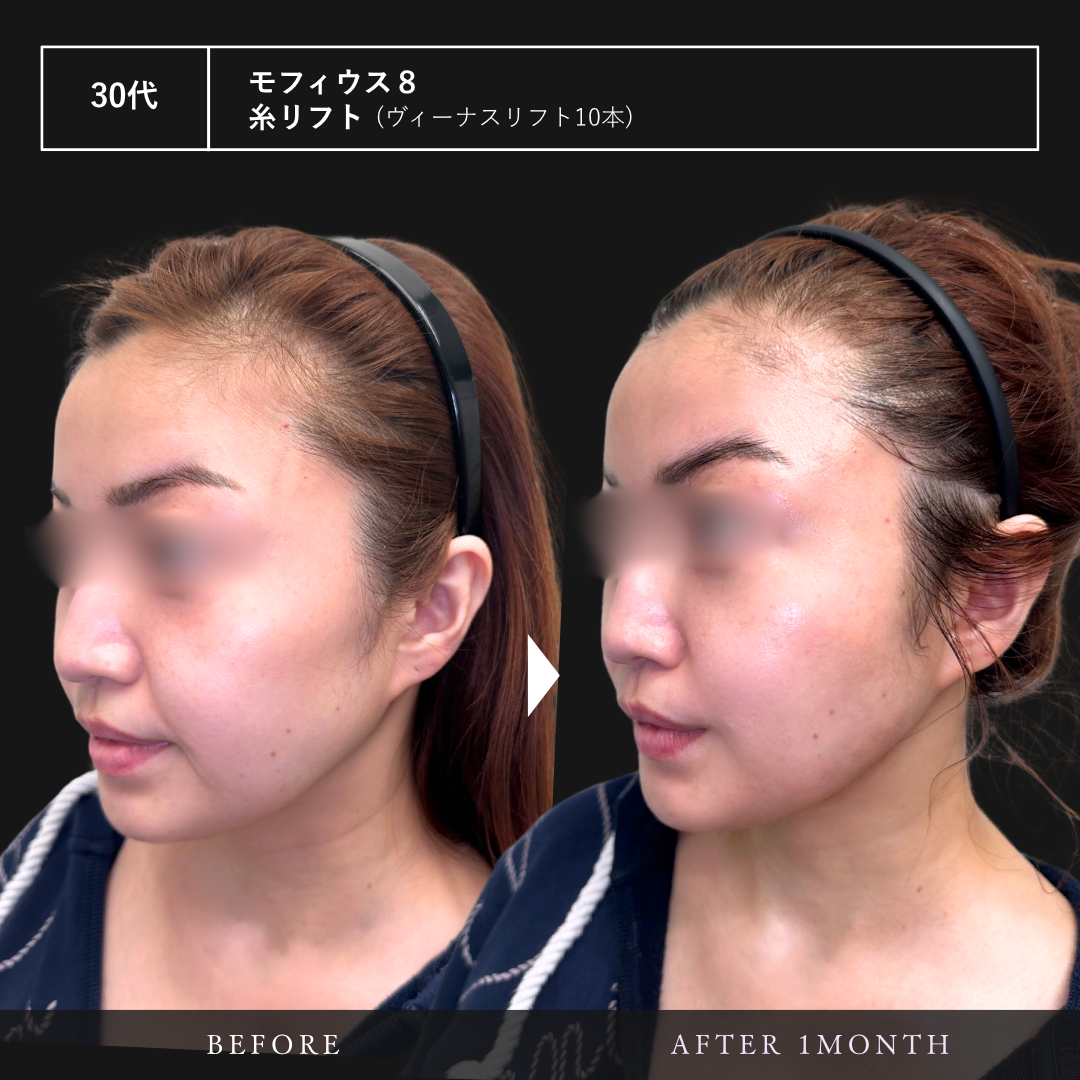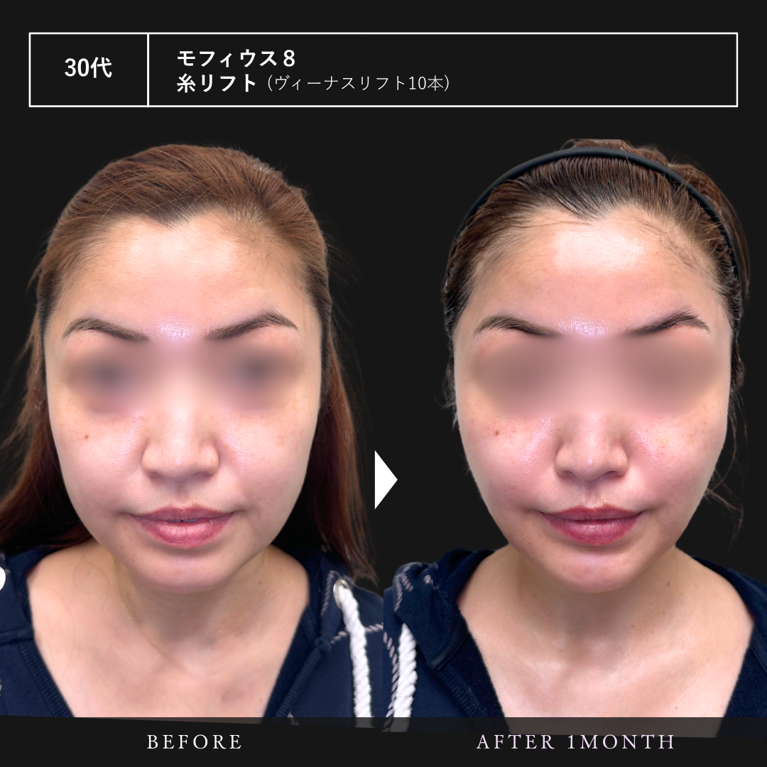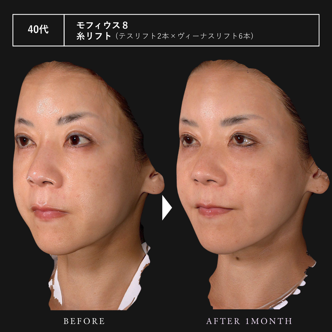 RFを皮膚内に照射したるみ・しわ改善・肌のハリ・眼窩脂肪のタイトニング、糸リフトで引き上げリフトアップ