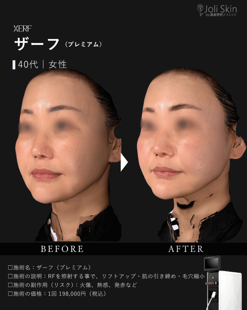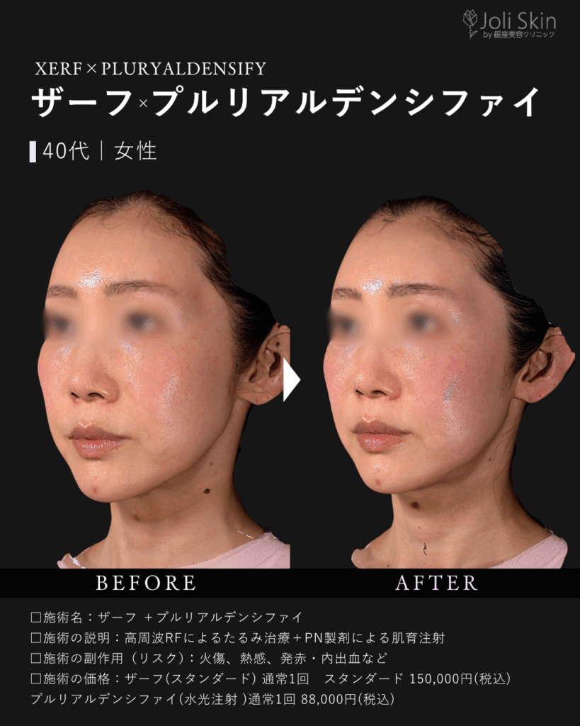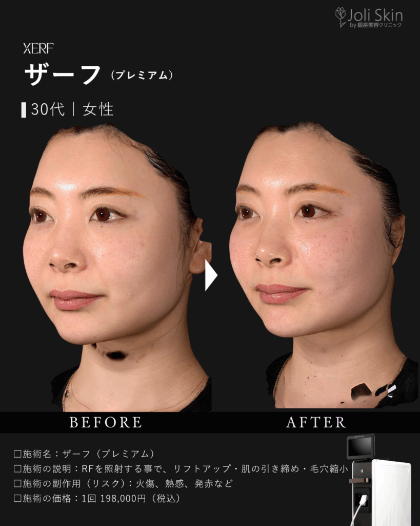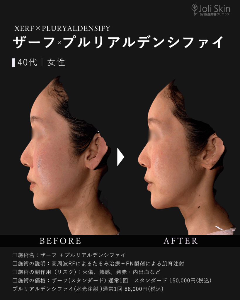 ・施術の説明:高周波RFによるたるみ治療+リガメント(支持靭帯)を補強する製剤