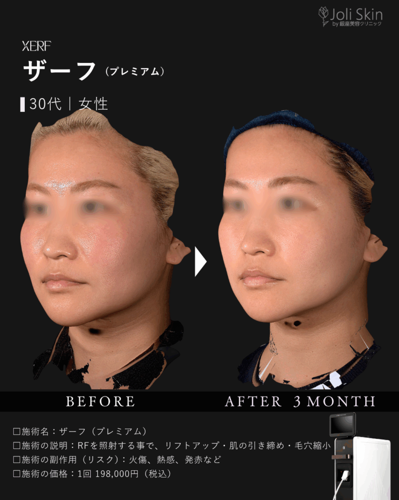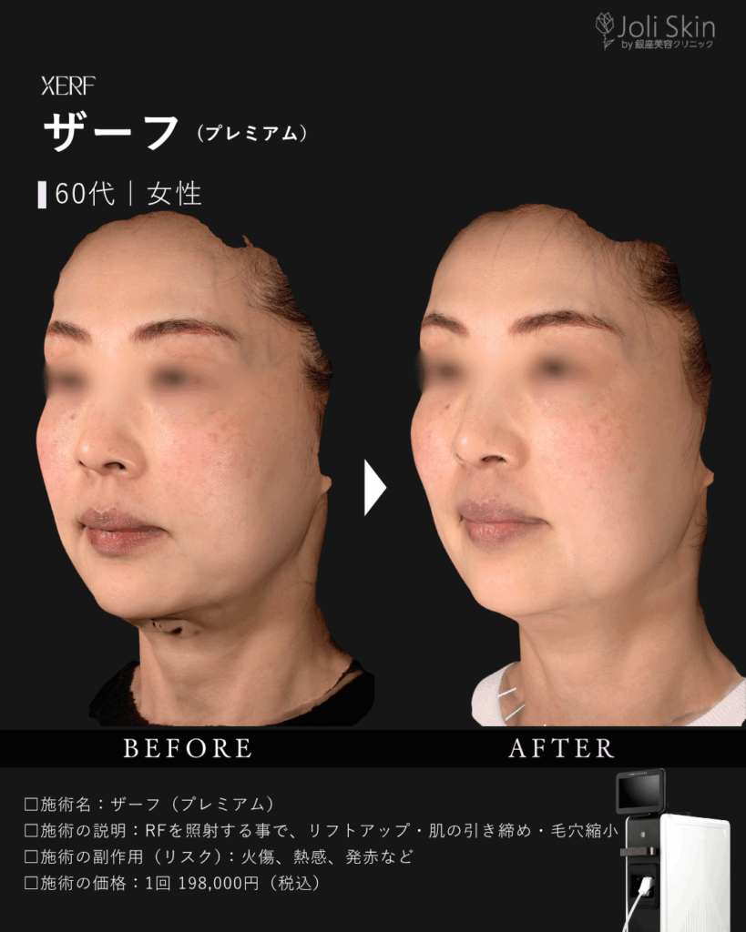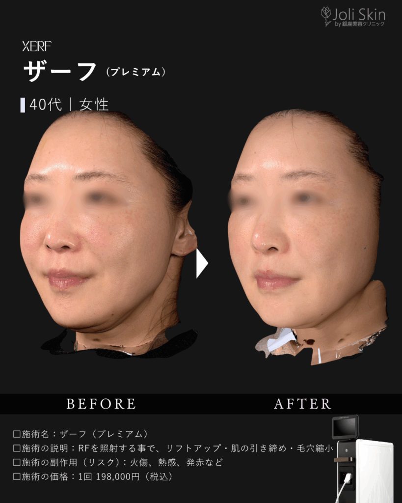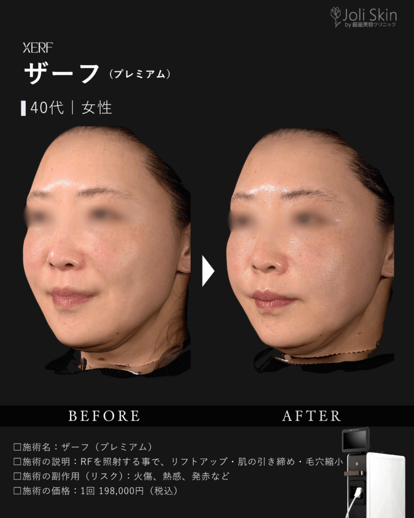 ・施術の説明:高周波RFによるたるみ治療+リガメント(支持靭帯)を補強する製剤