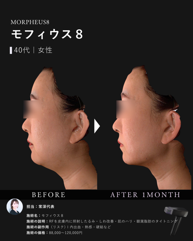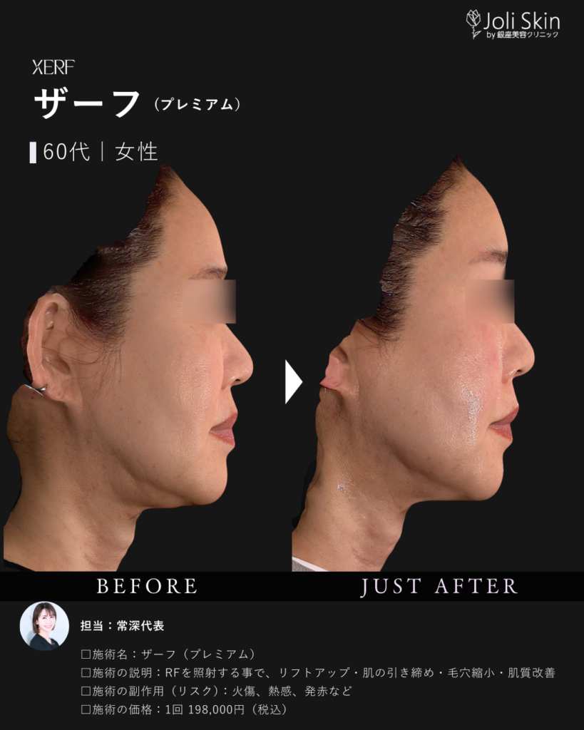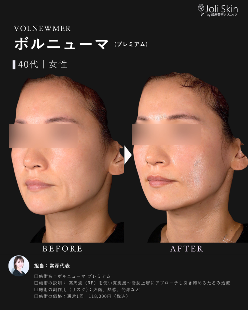 高周波(RF)を使い真皮層〜脂肪上層にアプローチし引き締めるたるみ治療