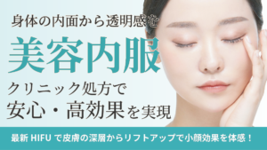 美容内服とは、医師が患者様のお悩みやなりたい肌に合わせて内服薬を処方しています。飲み続けることで効果が実感できます。シミ・くすみに悩まれている方はおすすめです。