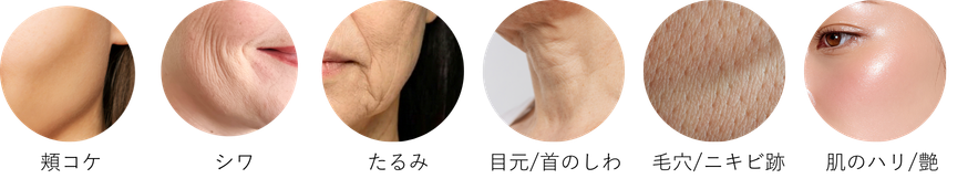 | 特徴 | 小じわ 皮たるみの改善 | 引き締め リフトアップ効果 | フェイスライン引き締め ハリ弾力アップ |