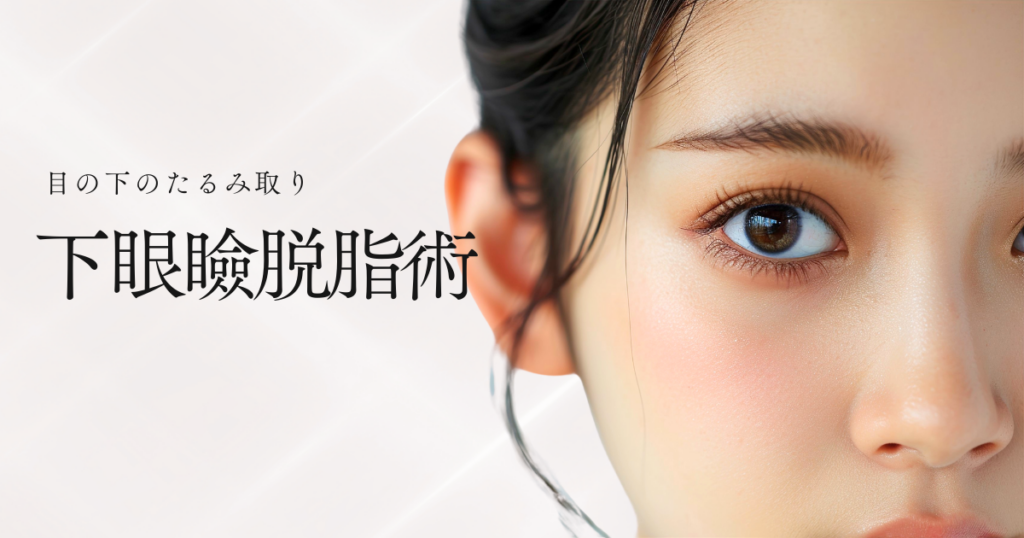 目の下のたるみは、骨格や皮膚によって若いうちから影響されているものと、加齢によるものに分けられます。目の下のたるみ治療は、たるみの原因である下まぶたの脂肪を裏側から取り出すことで、クマやたるみの改善に導く治療法です。